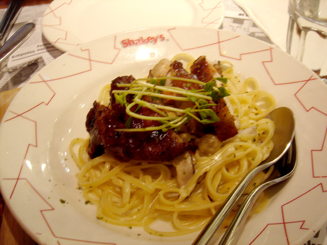 In the evening we ate at Shakey's Pizza. Since there were only two of us, we ordered two dishes only. We had a prawn pizza and a pasta. The pizza was great, while the pasta sucked. Anyway this pizzeria is recommended.