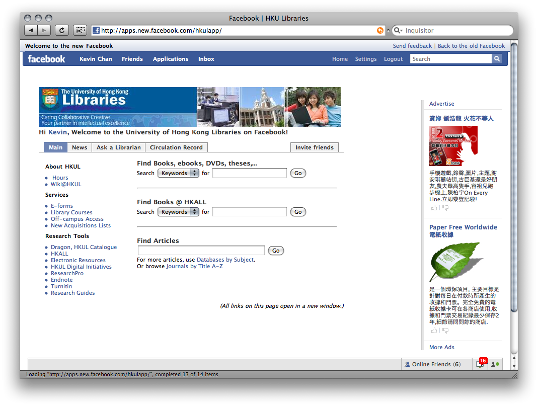 Just before we part again, there's a facebook app for HKU library.. Isn't it ridiculous?