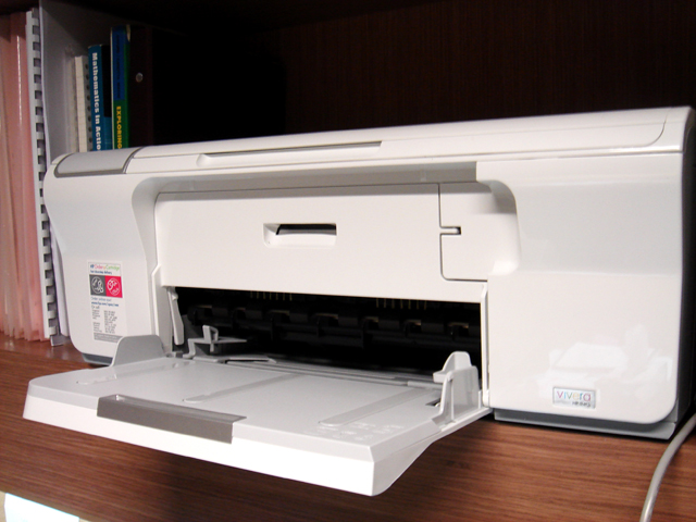 I got a new printer today. This time, I got a 3-in-1. Hopefully I can computerize my hand-written notes for my UE students. "Why not type your notes directly?" You may ask. Well, handwriting always gives more flexibility, and, more importantly, personal style. Maybe I'm more or less influenced by Patrick, but overall, I just like my style. Anyway what's so good about this printer is that it's not an Epson, and that it fits perfectly into my collection of white gadgets. Isn't it great?
