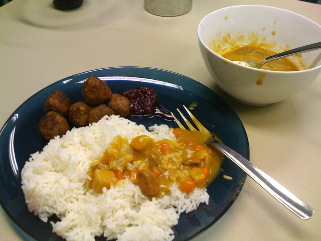 Finally, I cooked something for myself tonight. Sweden Meatball with Curry and Lingonberry Sauce. Not bad, isn't it?